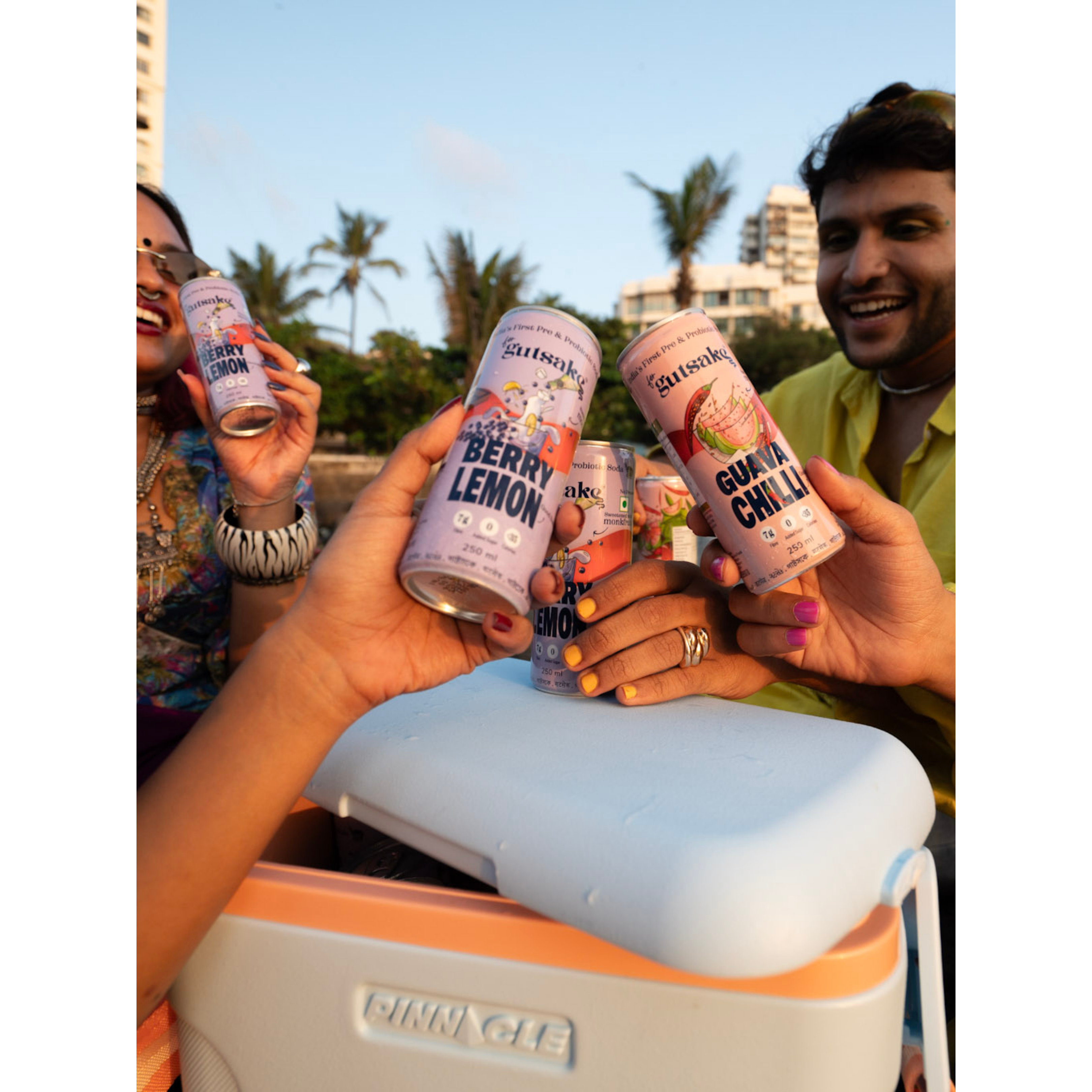 Guava Chilli and Berry Lemon team up for fruity, tasty and gut-friendly sips. 3 cans each, pop, sip and stay gut-sy!